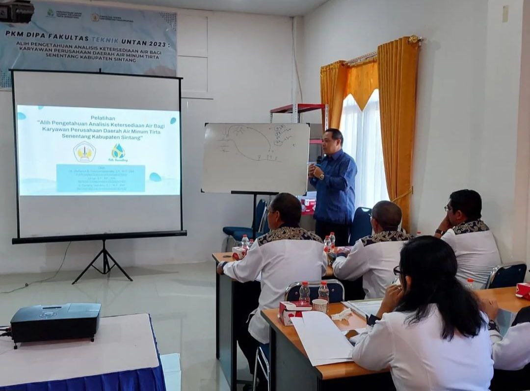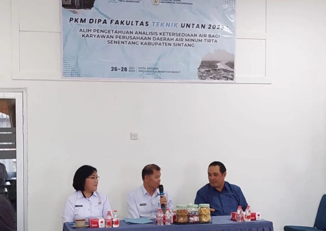 Rabu 26 Juli 2023 bertempat di Ruang Rapat Perumdam Tirta Senentang Sintang Asisten Bidang Perekonomian dan Pembangunan Sekretariat Daerah Kabupaten Sintang Florensius Kaha S. Pd, M. Si, membuka Kegiatan Workshop Alih Pengetahuan Analisis Ketersediaan Air bagi Karyawan Perusahaan Umum Daerah Air Minum Tirta Senentang Kabupaten Sintang.