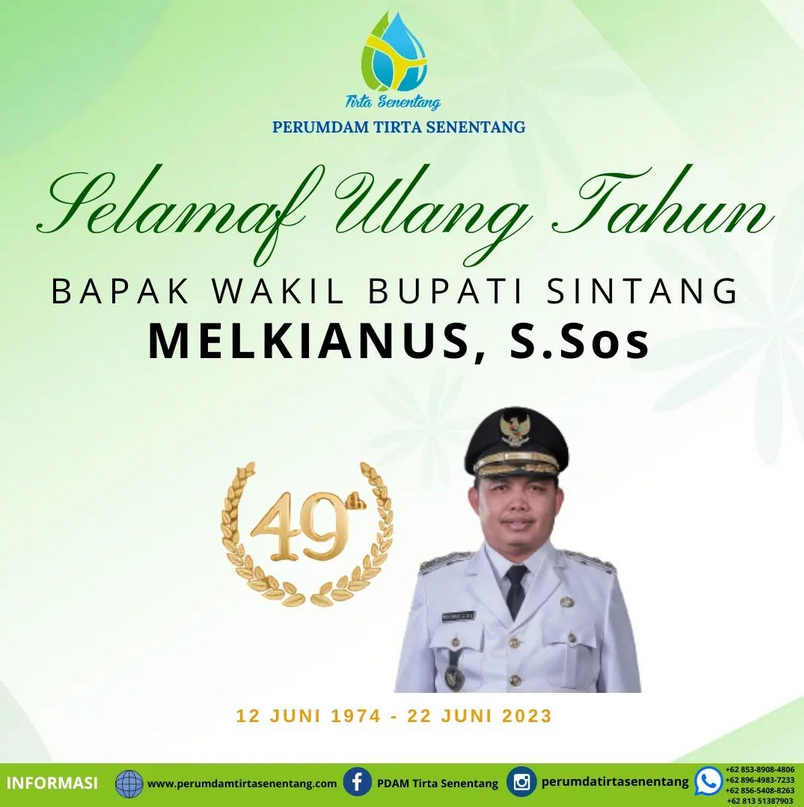 Selamat Ulang Tahun Bapak Wakil Bupati Sintang MELKIANUS, S.Sos, 22 Juni 2023
