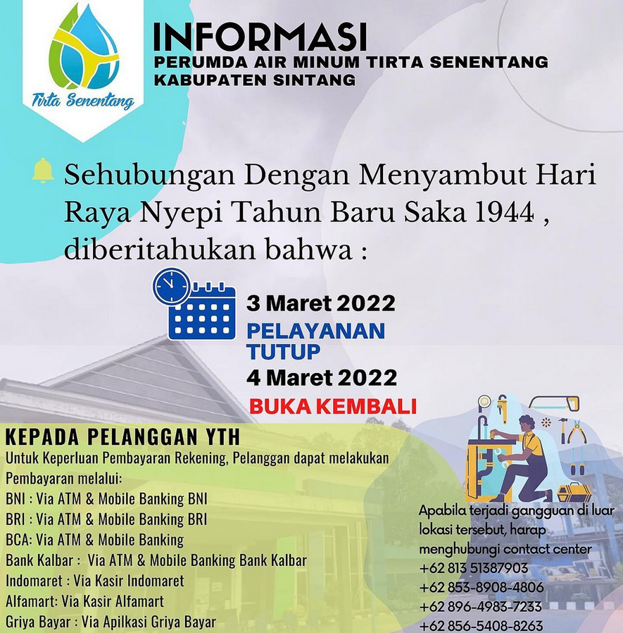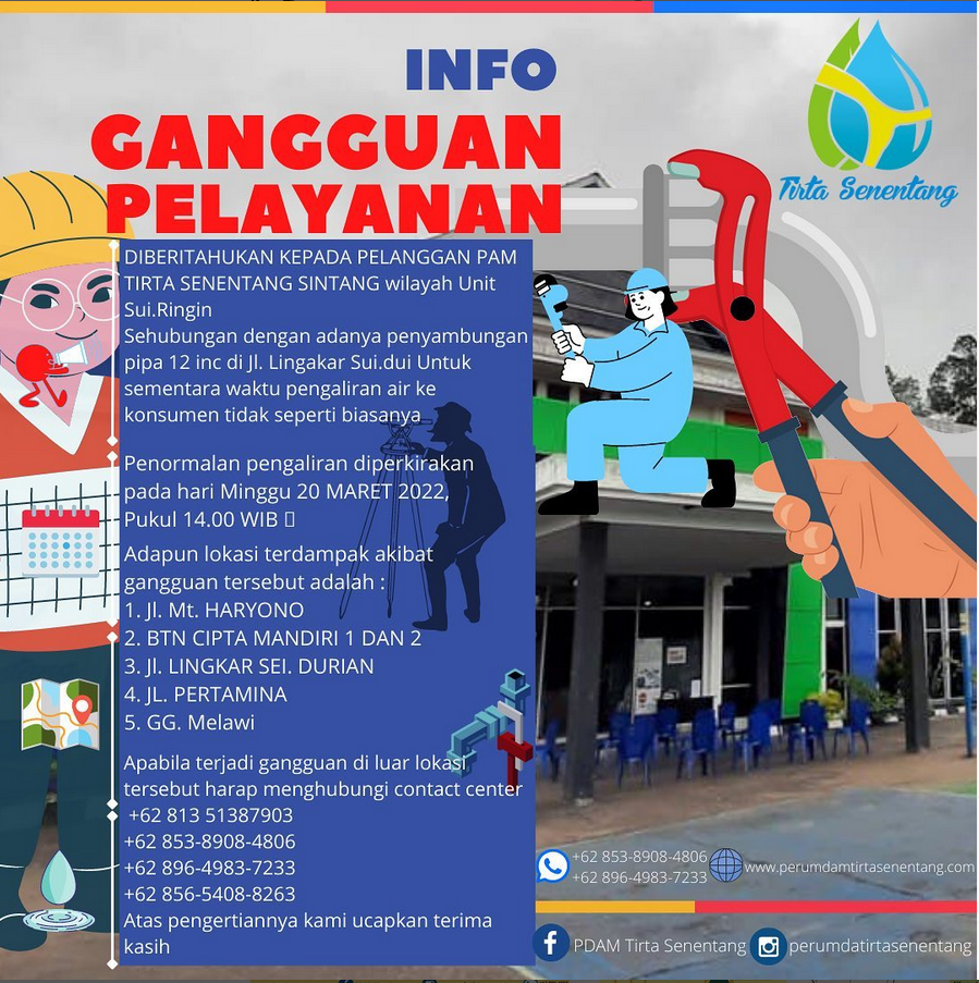 Pemberitahuan Gangguan Pelayanan Perbaikan Jaringan Pipa Distribusi diameter 300 MM di Wilayah Unit Sei.Ringin Mar 20, 2022