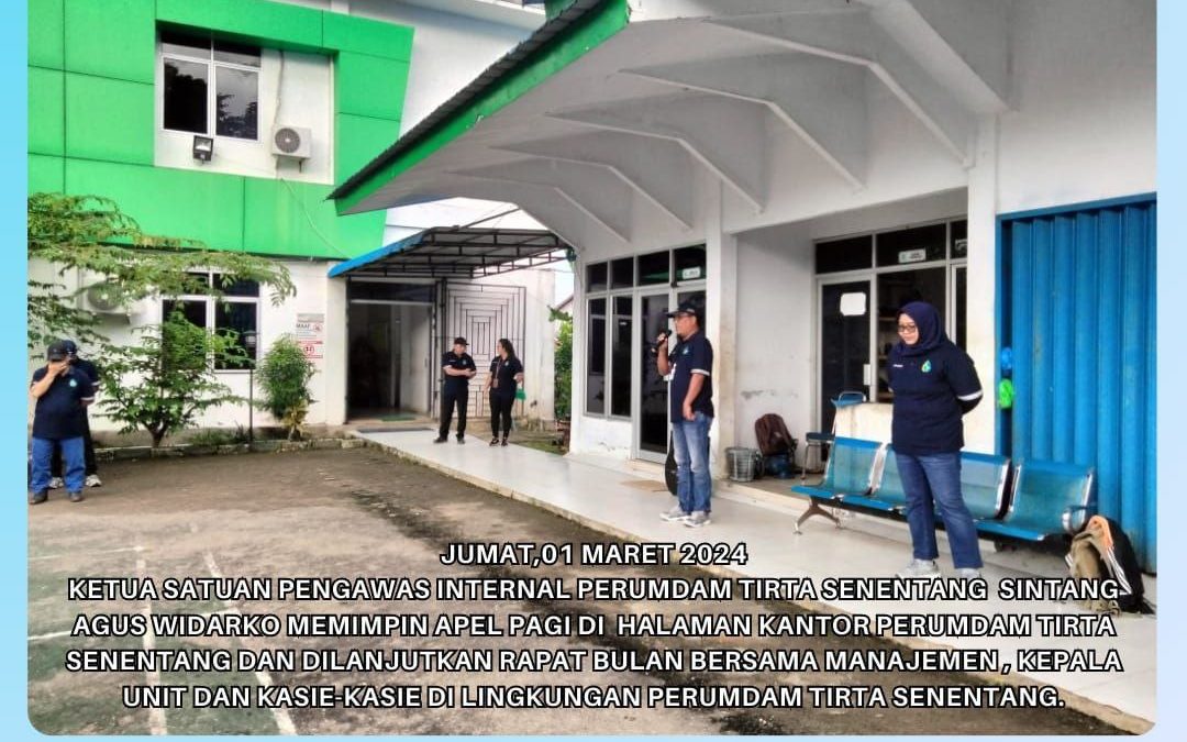 Ketua Satuan Pengawas Perumdam Tirta Senentang dalam amanatnya menyampaikan kepada seluruh jajaran agar tetap semangat memberikan pelayanan terbaik kepada masyarakat. Pada kesempatan ini juga Ketua Satuan Pengawas Internal juga menyampaikan Beberapa hal mengenai kedisiplinan bagi seluruh karyawan Perumdam Tirta Senentang.