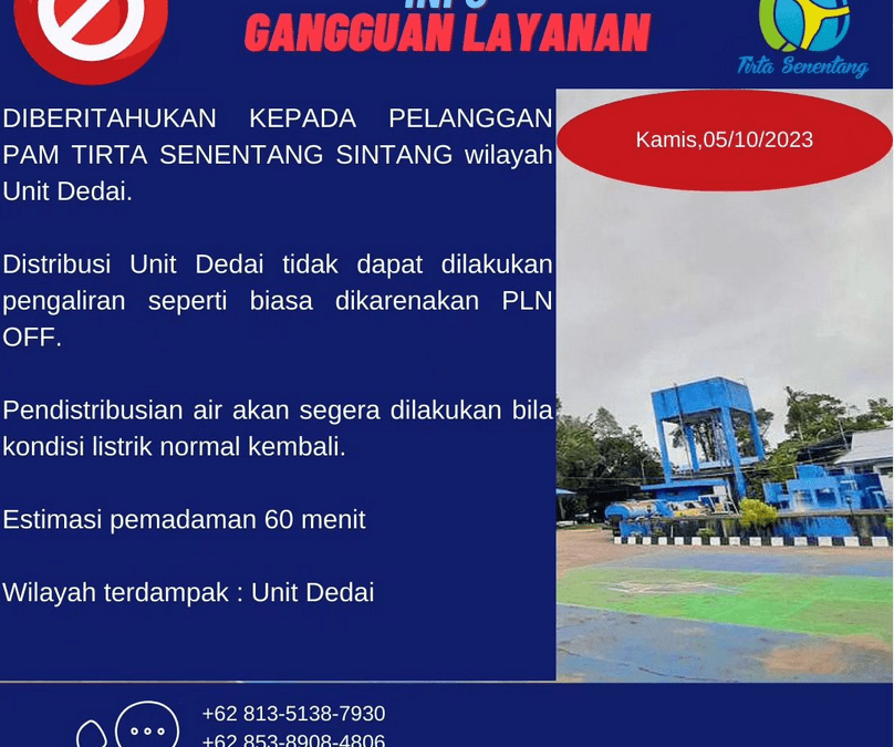 Pendistribusian Unit Dedai dIhentikan dikarenakan listrik PLN tidak stabil, 5 Oktober 2023 Okt 5, 2023