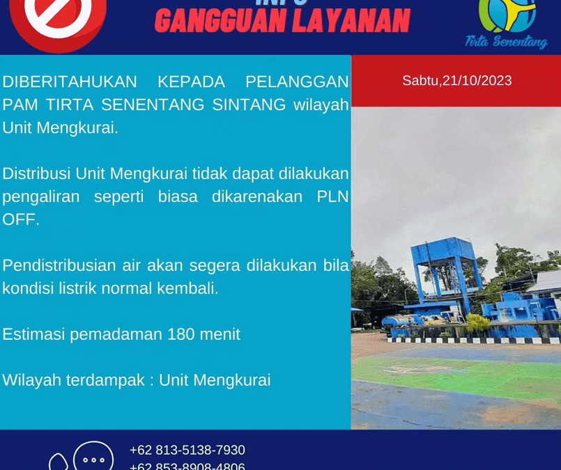 Pendistribusian Unit Mengkurai dIhentikan dikarenakan listrik PLN tidak stabil, 21 Oktober 2023 Okt 21, 2023