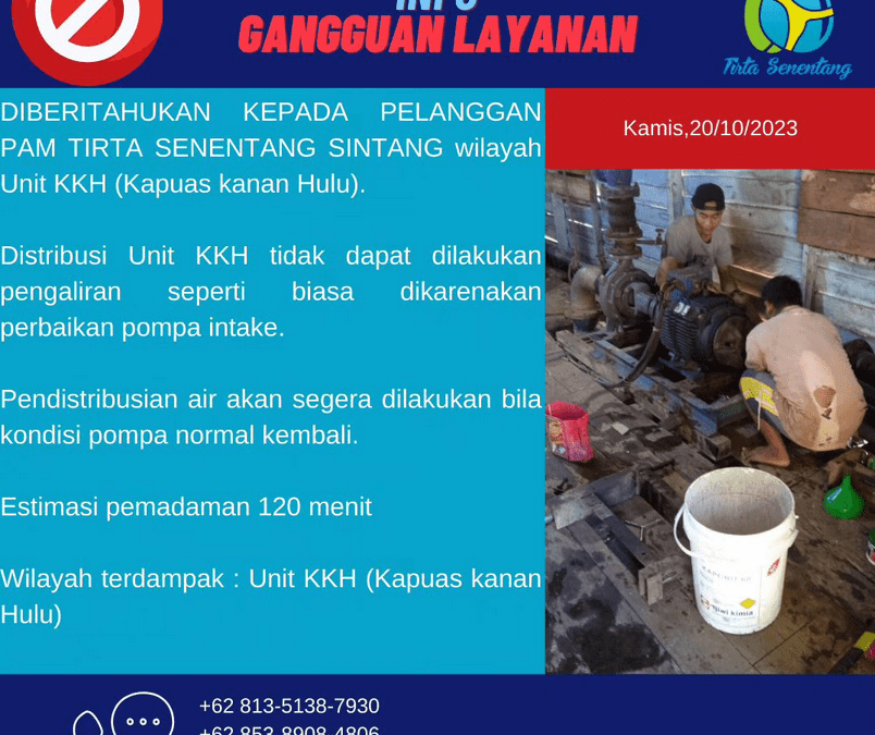Distribusi Air Perumdam Tirta Senentang Unit Tempunak Tidak Dapat Dilakukan Karena ada Perbaikan Ponton Intake Yang Mengalami Kebocoran