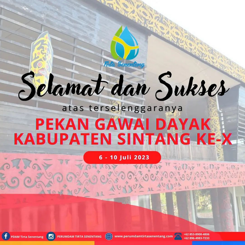 Perumdam Tirta Senentang mengucapkan Selamat dan Sukses atas terselenggaranya Pekan Gawai Dayak Kabupaten Sintang Ke- X Tahun 2023 Jul 6, 2023